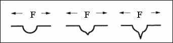 Одной из главных причин невозможности применения волоконного световода из кварцевого стекла в натуральном виде (в том виде, в котором он получается после вытяжки), является его низкая механическая прочность. Теоретически механическая прочность бездефектного кварцевого световода выше прочности стальной проволоки такого же диаметра [1]. Однако, например, любое соприкосновение поверхности световода с твёрдым предметом или даже частицей пыли, находящейся в воздухе приводит к появлению на поверхности стекла микротрещин, которые при приложении растягивающей нагрузки F начинают быстро расти (см. рис 1). В результате разрывная прочность световодов оказывается намного ниже теоретического предела прочности кварцевого стекла.