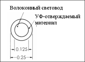 Для удовлетворения перечисленным выше условиям, защитное покрытие волоконного световода выполняется двухслойным. Первый амортизирующий слой выполняется из мягкого полимерного материала, а второй наружный слой из более жёстких полимеров. Волоконный световод с полимерным защитным покрытием получил название "оптическое волок-но". В настоящее время наибольшее распространение получили оптические волокна с защитным покрытием из уретанакрилатов (см. рис. 3).