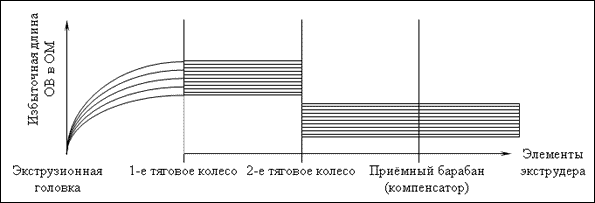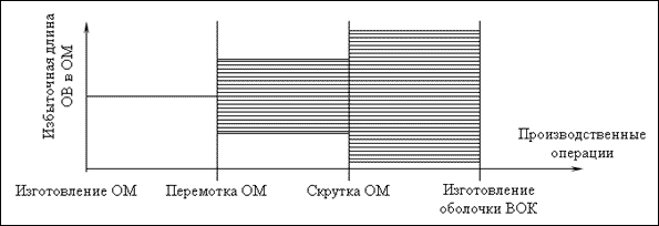 Рис. 15. Иллюстрация изменения избыточной длины ОВ в процессе изготовления ВОК