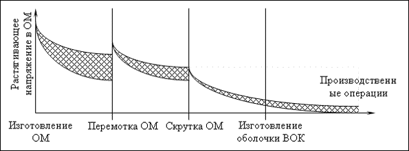Рис. 17. Иллюстрация релаксации напряжений в оболочке ОМ в процессе изготовления ВОК