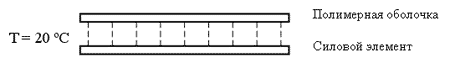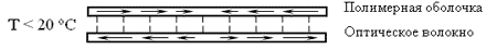 Прямым следствием из вышеизложенных свойств полимеров являются большие значения ТКЛР. Разница их ТКЛР с ТКЛР кварца составляет около двух порядков. Именно поэтому использование полимеров с учётом особенностей их свойств требует усложнения конструкции кабеля, связанного с уменьшением влияния высоких значений ТКЛР полимерной трубки и недостаточного значения модуля его упругости. Указанное усложнение конструкции в основном сводится к фиксированию полимерного покрытия относительно оптического волокна, т. е. к установлению прочной связи между полимером и некоторым силовым элементом, который в ряде случаев вводится в ВОК. Представим эту связь в виде следующей модели: