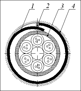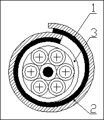 Рис.2. Конструкция кабеля с бронепокровом из стальной ламинированной гофрированной ленты.
