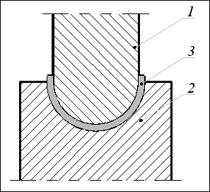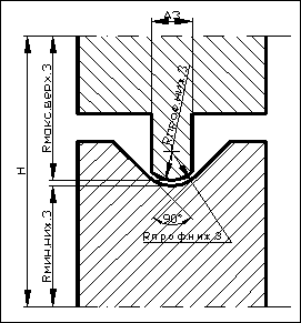Перегнем ленту толщиной h через круглый зуб с радиусом R на угол α (см. рис.4). При некоторых рассуждениях можно считать, что средняя линия фольги при исходной длине αR вытянется до длины α(R+1/2·h). Таким образом, относительное удлинение фольги по средней линии в данном случае составляет (1/2·h/R).