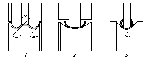 Для формирования области нахлёста также весьма эффективно применение пары горизонтальных роликов, несколько более сложных в изготовлении, форма рабочих поверхностей которых представлена на рис. 21. Здесь нужно только учитывать, что форма протектора на выходе этого инструмента несколько отличается от таковой на выходе из пилота.