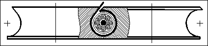 Сечение пилота на "входе" выбирается исходя из приблизительно известной формы ленты на выходе из блока первичных роликов. Края пилота скрепляются перемычкой, в центре которой располагается кольцо, фиксирующее подаваемую кабельную заготовку. Форма и размеры сечения пилота на выходе выбираются, исходя из известных диаметра заготовки и толщины гофрированной фольги. При этом, очевидно, что протектор будет "недожат" на толщину стального листа, из которого изготовлен пилот (см. рис. 19).