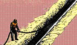 Прокладка ОК ведется без увеличения или снижения скорости, кабельный нож должен ровно заглаживать дно прорези во избежание повреждения ОК выступающими камнями и исключения резких изгибов ОК. Нельзя превышать допустимое усилие растяжения ОК. Наклон ножа кабелеукладчика должен быть постоянным, в ходе прокладки ведется контроль глубины прокладки ОК,