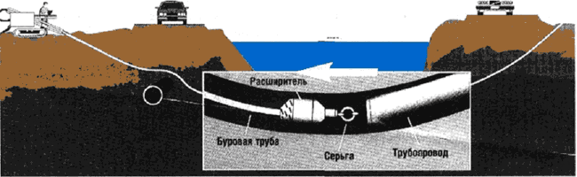 Рис. 3: Выполнение речного перехода методом горизонтально-наклонного бурения