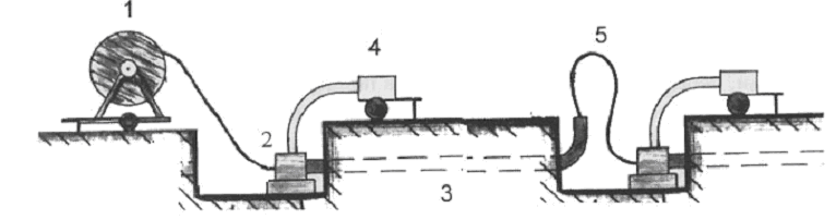 1 - барабан с ОК; 2 - устройство пневмопрокладки; 3 - ЗПТ; 4 - компрессор; 5 - технологическая полупетля