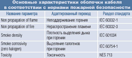 Вообще существует немало стандартов, описывающих необходимые свойства кабельных оболочек в соответствии с международными или национальными требованиями техники пожарной безопасности. О них следует рассказать подробнее.