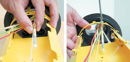 Специальный фиксатор натяжения силовых элементов кабеля и его крепление в монтажной муфте от компании R&M