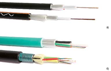 Типы волоконно-оптических кабелей для прокладки вне помещений отличаются сегодня большим разнообразием, что объясняется условиями эксплуатации и способами их инсталляции. Такие кабели можно условно разделить на две группы: те, которые могут непосредственно вкапываться в грунт, и те, которые прокладываются в специальных канализациях. Отдельно можно также выделить кабели, которые подвешиваются на открытом пространстве между столбами на несущем тросе или на кронштейнах вдоль зданий.