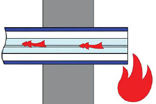 Как уже отмечалось, одним из самых лучших способов защиты от влаги является водоотталкивающий гель. Почти все кабели, которые прокладываются вне помещения, имеют гелезаполнен-ные трубки, а в Multi Tube часто и свободное пространство между трубками заполняется гелем. Но гель является отличной средой для распространения огня, поэтому пламя может перекинуться в соседние с коммуникационным центром помещения. Также не отвечают требованиям пожарной безопасности и сами термопластиковые трубки. Поэтому если даже Loose Tube-кабель имеет LSZH-оболочку, некоторые производители не рекомендуют его использовать для соединения двух информационных узлов внутри одного здания (рис.). В этом случае LSZH-оболочка является необходимым, но не достаточным условием, и об универсальном кабеле здесь вряд ли может идти речь.