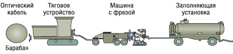 Схема функциональных устройств при прокладке оптического кабеля в микротраншею