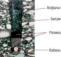 Сечение микротраншей с проложенным кабелем