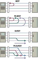 Надо учитывать, что когда передача данных ведется по всем парам одновременно (например, 1000Base T), необходимо измерять и уровень переходного затухания на дальнем конце линии (Far EndCrossTalk, FEXT).