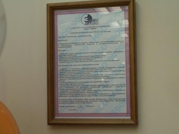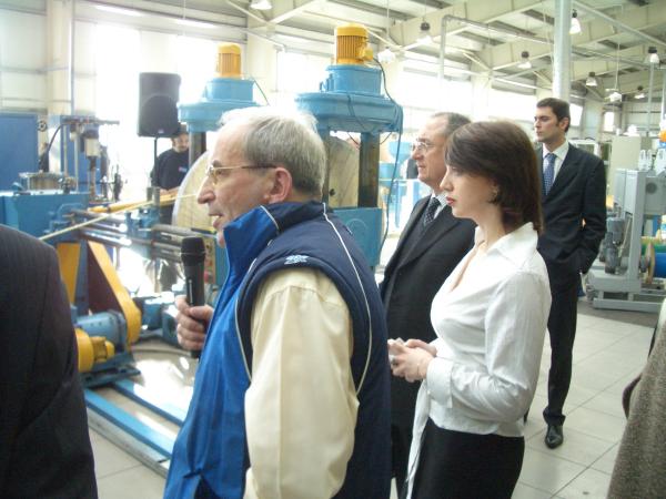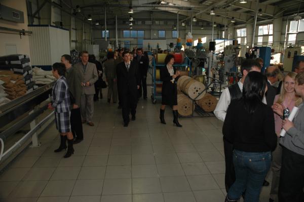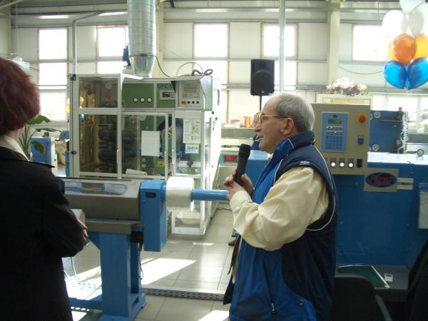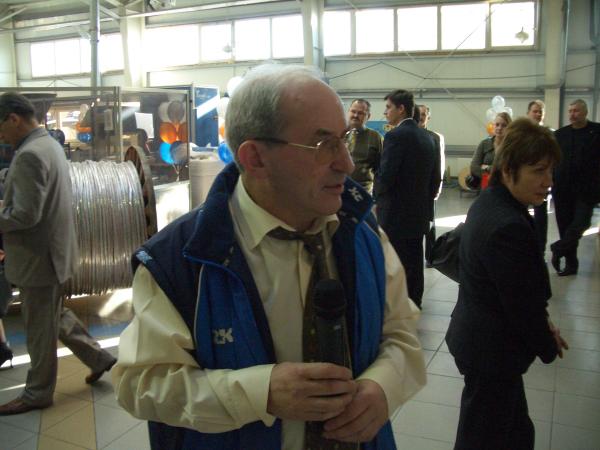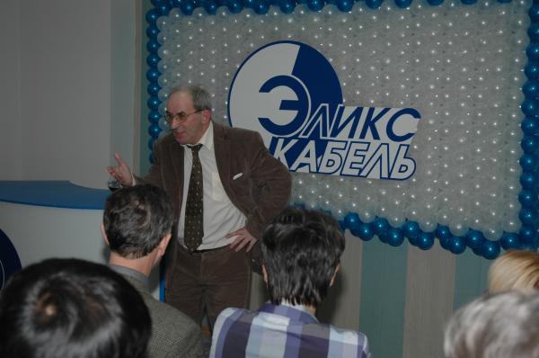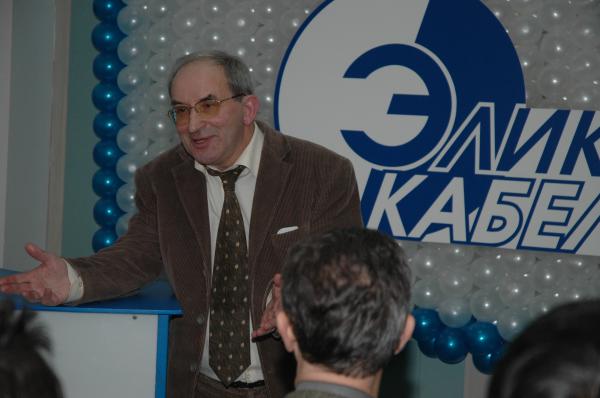 Когда все собрались, слово держал Генеральный директор "Эликс-Кабеля" Леонид Григорьевич Рысин. Он рассказал об истории предприятия и о политике работы с клиентами. Леонид Григорьевич раскрыл секрет успешности предприятия: ориентация производства не столько на крупные, но на более мелкие и разнообразные заказы. За счет гибкости производства и ориентации на потребности рынка в общем и потребителя в частности, достигается динамичность бизнеса предприятия. Однако работа идет и с крупными заказами. В частности, один из крупных клиентов "Эликс-Кабеля" - Московский метрополитен.