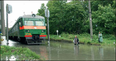 Движение электричек и пригородных поездов на некоторых направлениях было приостановлено из-за подтопления больших участков железнодорожных путей, поезда дальнего следования шли с большими опозданиями.