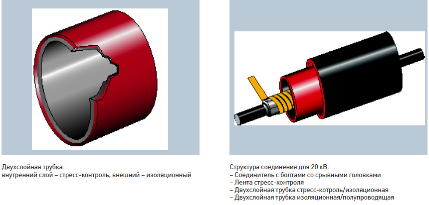 - Соединительные и переходные муфты для одножильных и трехжильных кабелей напряжением 10, 20 кВ с пластмассовой изоляцией, а также для трехжильных кабелей напряжением 10 кВ с БПИ.