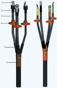 Концевые термоусаживаемые муфты наружной (1) и внутренней (2) установки предназначены для оконцевания пятижильных кабелей с пластмассовой изоляцией на напряжение до 1 кВ (например: АВВГ, ВВГ).