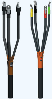 Концевые термоусаживаемые муфты наружной (1) и внутренней (2) установки предназначены для оконцевания трех и четырехжильный кабелей с пластмассовой изоляцией на напряжение до 1 кВ (например: АВВГ, ВВГ и других).