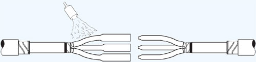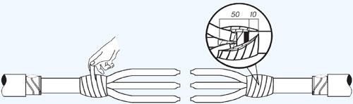 8. Установка распорки между жилами и стяжка жил бандажами из стеклоленты