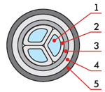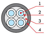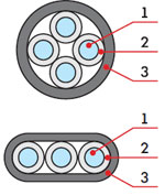 Кабель силовой с изоляцией из поливинилхлоридного пластиката бронированный стальными лентами и со шлангом из ПВХ пластиката АВБбШв-0.66 |