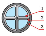 Жилы – однопроволочный медный (ВВГQПнгQLS) или алюминиевый (АВВГQПнгQLS) проводник; Изоляция – ПВХ пластикат пониженной пожароопасности. Изолированные жилы уложены параллельно в одной плоскости; Наружная оболочка – ПВХ пластикат пониженной пожароопасности. |