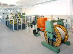 Новое поколение машин со сдвоенной намоточной головкой позволяет в два раза увеличить выработку стандартных машин. Линия предназначена для телефонных, энергетических, компьютерных кабелей круглого сечения внешним диаметром от 1 мм до 6 мм (гибкий кабель), а также плоских кабелей. Могут быть использованы отдающие устройства портального и/или флаерного типов. Материал применяемых катушек – картон, алюминий, пластик, клееная фанера, дерево; вес катушек – до 15 кг; диаметр щеки – минимум 100 мм, максимум 200 мм; ширина – минимум 50 мм, максимум 190 мм.