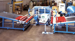 Полностью автоматическая линия со сдвоенной намоточной головкой для кабелей больших сечений, как круглой, так и плоской формы. Предназначена для кабелей минимальным диаметром 6 мм и максимальным диаметром 22 мм. Может работать с катушками нескольких размеров: от 450 мм до 1000 мм. Максимальная линейная скорость 400 м/мин. Возможна работа в линии с экструдером или независимо, с приводным отдающим устройством.