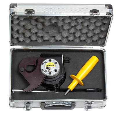 Секторные ножницы с электрическим приводом. Позволяют резать все типы силового кабеля и провод АС диаметром до 53 мм.