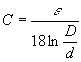 где e -коэффициент диэлектрической проницаемости, D и d –диаметры по изоляции и медной жиле. Как видим, если исключить изменения e от частоты, емкость на высоких частотах не меняется. Коэффициент диэлектрической проницаемости зависит от материала изоляции, например у полиэтилена он равен 2,2-2,3, а у пенополиэтилена – 1,2-1,5, что существенно улучшает вторичные параметры.