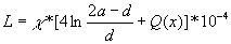 где a - расстояние между проводниками, d – диаметр проводника, Q(x) – коэффициент учитывающий внутрипроводниковую индуктивность, который уменьшается с ростом частоты, вследствие поверхностного эффекта.