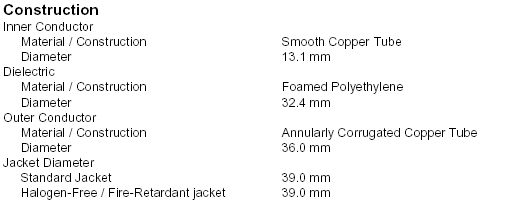 50 ohms RF Feeder(1-1/4" Flexible Foam Dielectric)