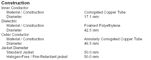 50 ohms RF Feeder(1-5/8" Flexible Foam Dielectric)
