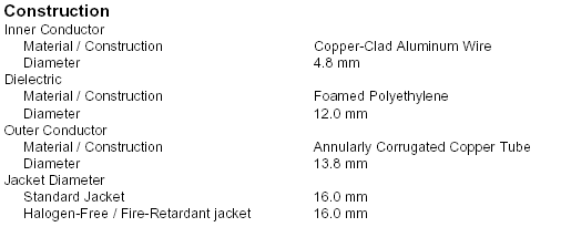 50 ohms RF Feeder(1/2" Flexible Foam Dielectric)