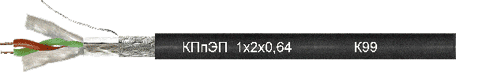 Пары с однопроволочными медными проводниками диаметром 0,64 мм, с изоляцией из пористого полиэтилена, в общем экране из алюмолавсановой ленты и оплетки из медных луженых проволок плотностью 65% с дренажным проводником. В оболочке из поливинилхлоридного пластиката для эксплуатации в закрытых помещениях – КПпЭВ или светостабилизированного полиэтилена для эксплуатации на открытом воздухе – КПпЭП или термопластичного полиуретана для эксплуатации в химически агрессивных средах – КПпЭУ.