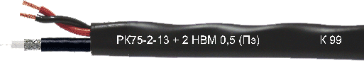 Радиочастотный кабель типа РК75-2-13 со сплошной полиэтиленовой изоляцией, два провода питания марки НВМ и с сечением от 0,5 или 0,75 мм2 в общей оболочке из ПВХ пластиката для прокладки внутри помещений или из светостабилизированного полиэтилена для наружной прокладки.