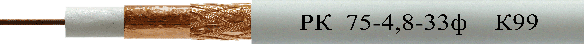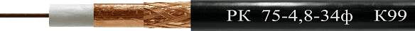 Поливинилхлоридный пластикат для РК75-4,8-33ф; светостабилизированный полиэтилен для РК75-4,8-34ф; наружный диаметр кабеля (6,9 ± 0,2) мм |