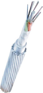 Заземляющий провод, содержащий оптический сердечник, монтируется наверху ЛЭП и несет двойную функцию грозотроса и кабеля связи.