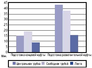Благодаря использованию сухого водоблокирующего материала разделка кабеля с ленточными волокнами осуществляется быстрее, чем кабелей со "свободными трубками" или центральной трубкой, особенно в случае использования разветвительных муфт.