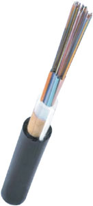Конструкция кабелей с малым числом волокон для прокладки в кабельной канализации и грунте (со сталь-полимерной лентой). Кабель имеет одну центральную трубку, в которой располагается от 4 до 12 12-волоконных жгутов.