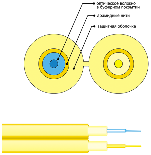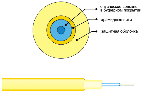 Кабель предназначен для прокладки внутри зданий на лотках, в коридорах, шахтах. Используется для изготовления оптических шнуров.