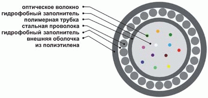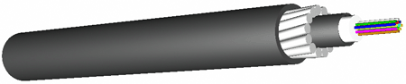 Кабель волоконно-оптический с одномодовым или многомодовым волокном c центральной модульной трубкой и броней из стальной оцинкованной проволоки.