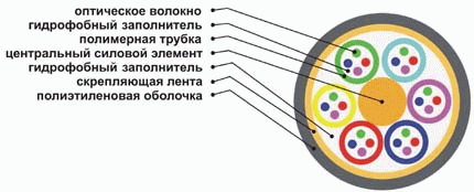 Кабель волоконно-оптический диэлектрический с одномодовым или многомодовым волокном без бронепокровов.