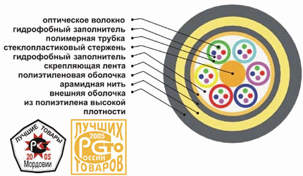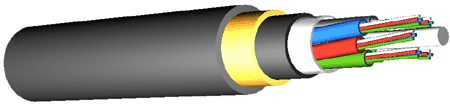 Кабель волоконно-оптический диэлектрический самонесущий с одномодовым или многомодовым волокном с силовым элементом из высокомодульных арамидных нитей.