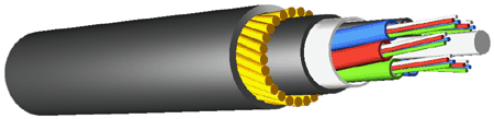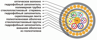 Кабель волоконно-оптический диэлектрический с одномодовым или многомодовым волокном армированный стеклопластиковыми прутками.
