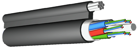Кабель волоконно-оптический самонесущий с одномодовым или многомодовым волокном (Конструкция выполнена с вынесенным силовым элементом. Несущий элемент - стальной трос).