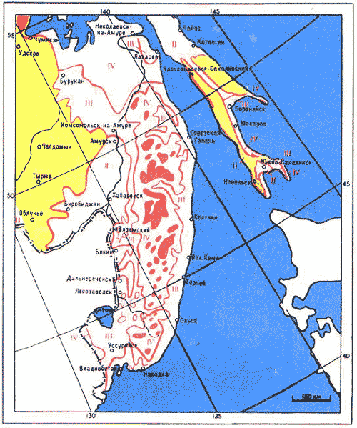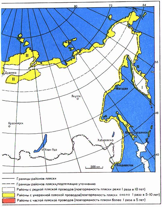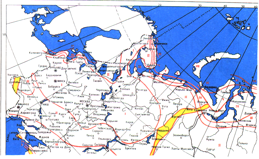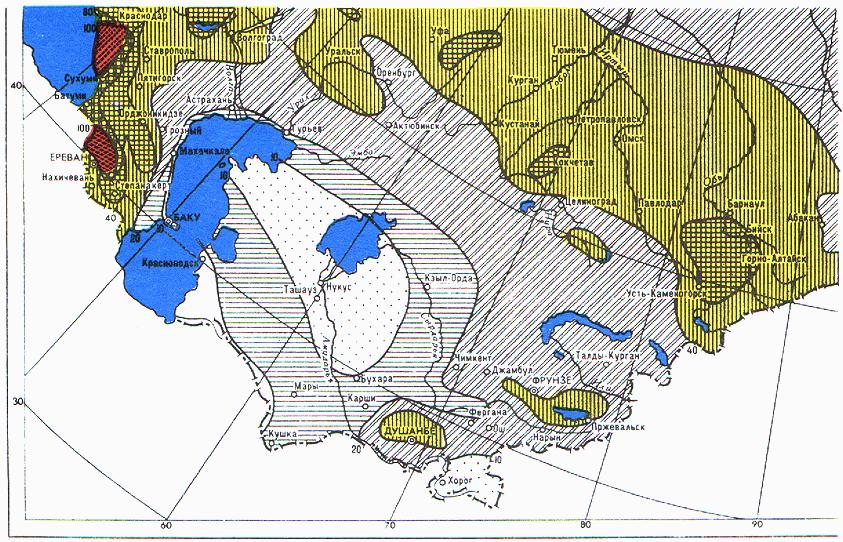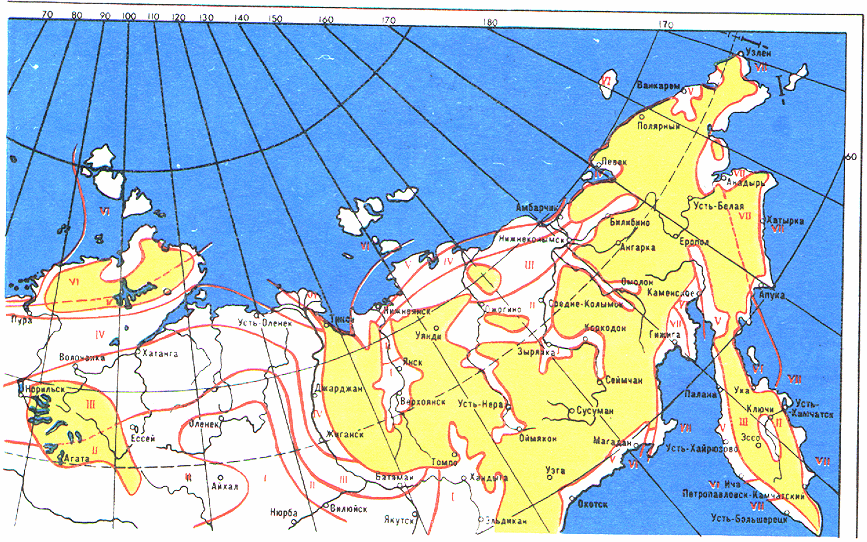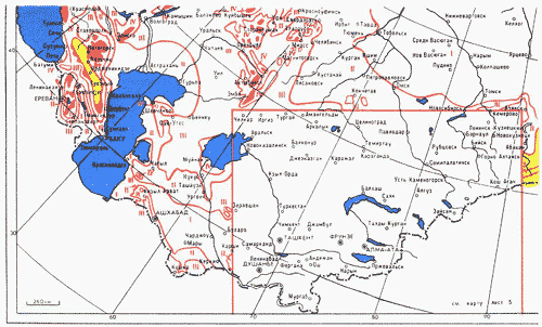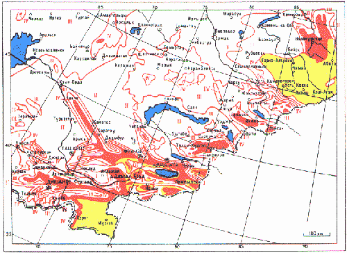 Рис. 2.5.1. Карта районирования территории СНГ по скоростным напорам ветра. Лист 1