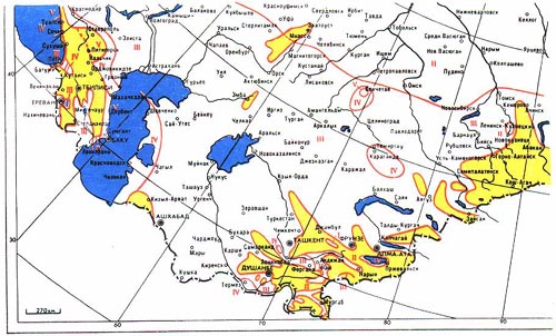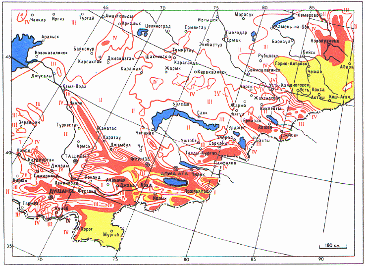 Рис. 2.5.2. Карта районирования территории СНГ по скоростным напорам ветра. Лист 2