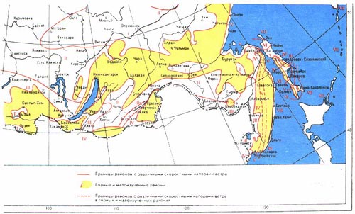 Рис. 2.5.3. Карта районирования территории СНГ по скоростным напорам ветра. Лист 3